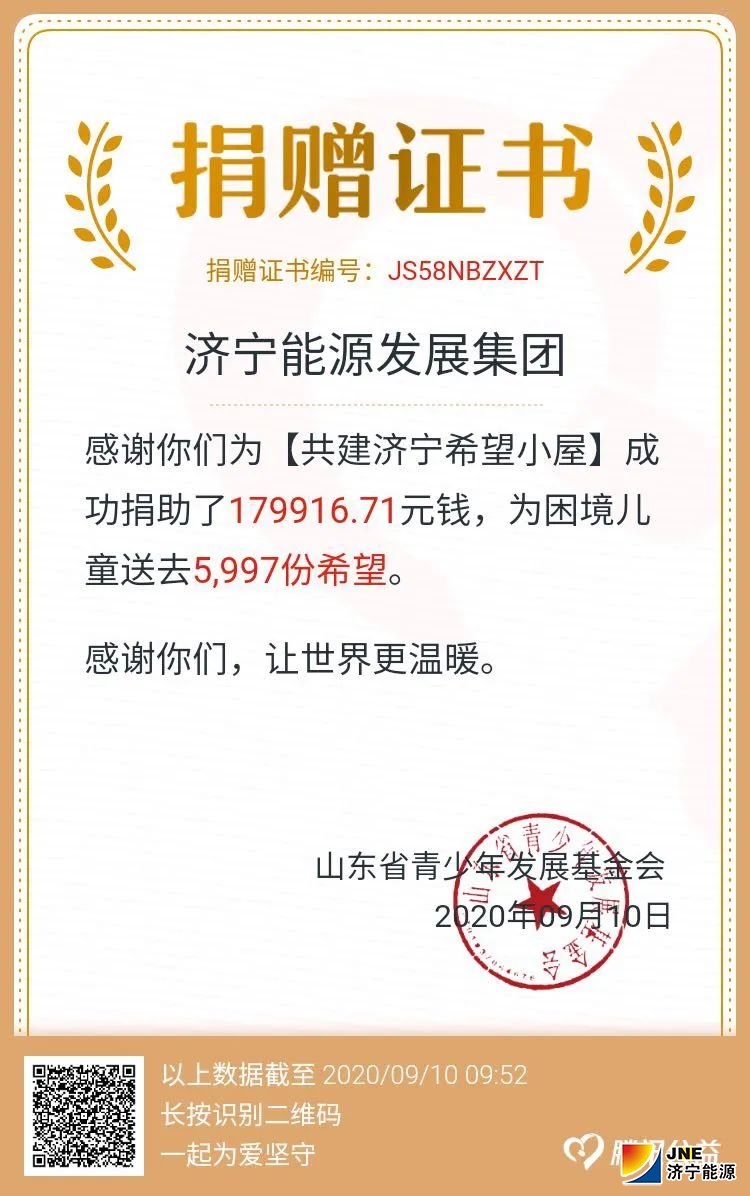 三天募集善款26万余元 济宁能源涓流汇海 助力“希望小屋”建设